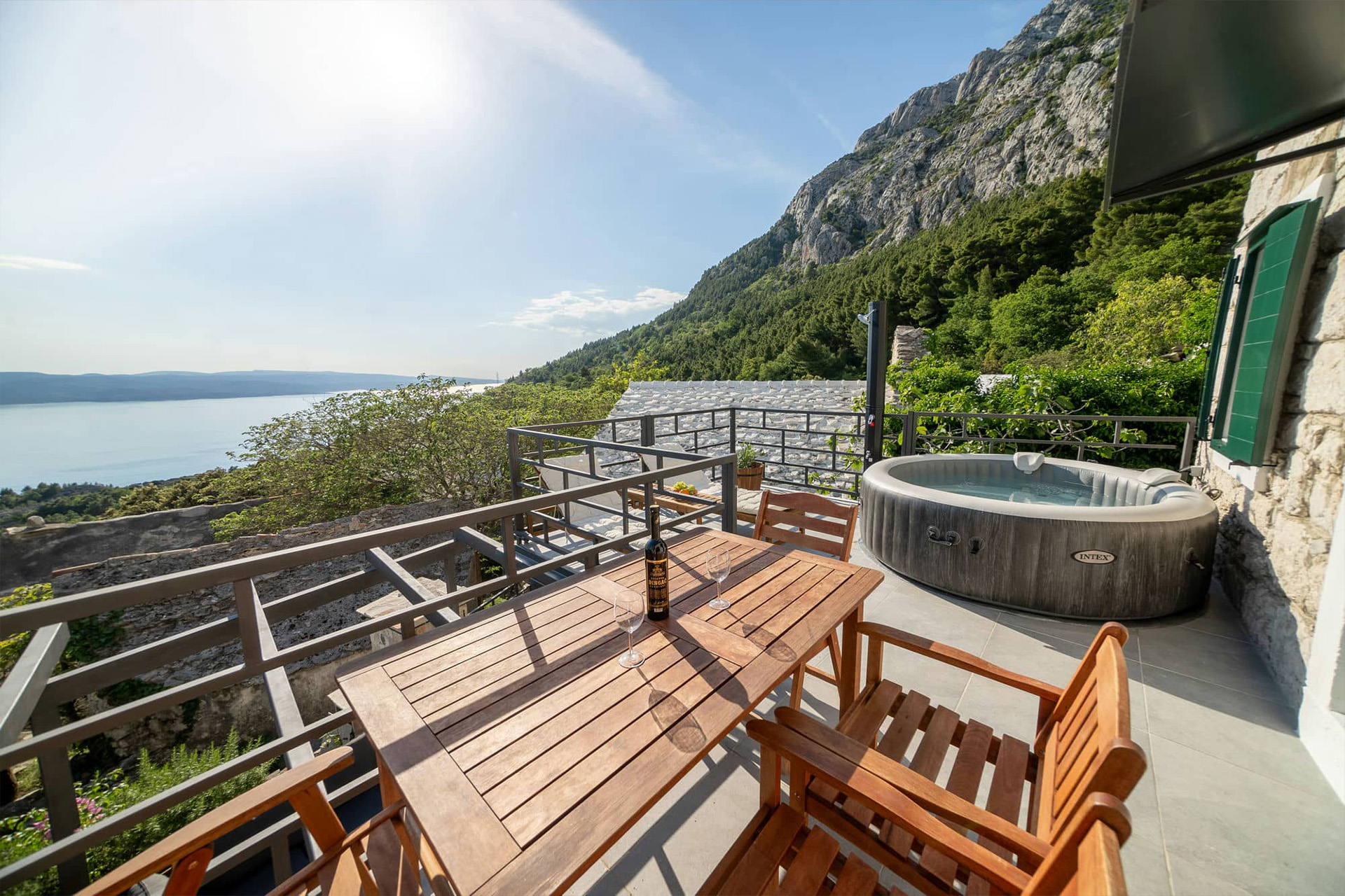 Villa Adrion is an oasis of peace, located at the foot of the Biokovo Nature Park in the place Topići on the Makarska Riviera, just above Baška Voda, with protected cultural heritage. This charming stone house was named ‘Adrion’ after the first historical name of the mountain Biokovo. It can accommodate up to 7 people in 3 bedrooms. In the complex there are 2 kitchens, 3 bathrooms with toilets, a tavern – and every room has a wonderful view of the Adriatic sea and it’s surrounding islands. Completely renovated in year 2024, and with a history older than 100 years, it provides a peaceful escape from the hustle and bustle, providing a sense of peace and freedom. Imagine waking up to the sunrise over Biokovo, drinking morning coffee on the summer terrace and breathing the fresh mountain air, or sipping a glass of wine with a sunset view. This is a place where the beauty of nature and cultural heritage bond together, inviting you to renew your energy. Two public parking lots are available for all guests. In addition, the village Topići is also attractive for mountaineers, because attractive trails to mountain Biokovo start nearby, as well as rock climbing..